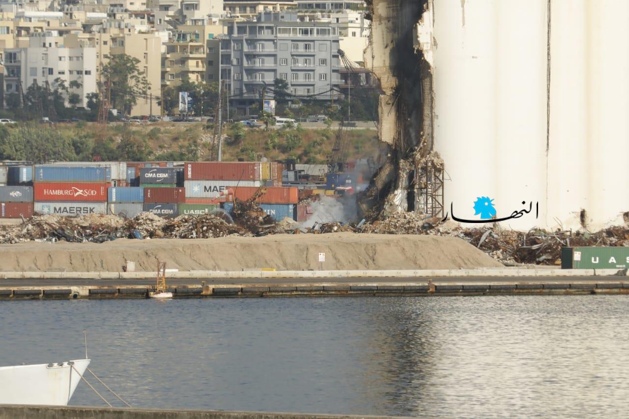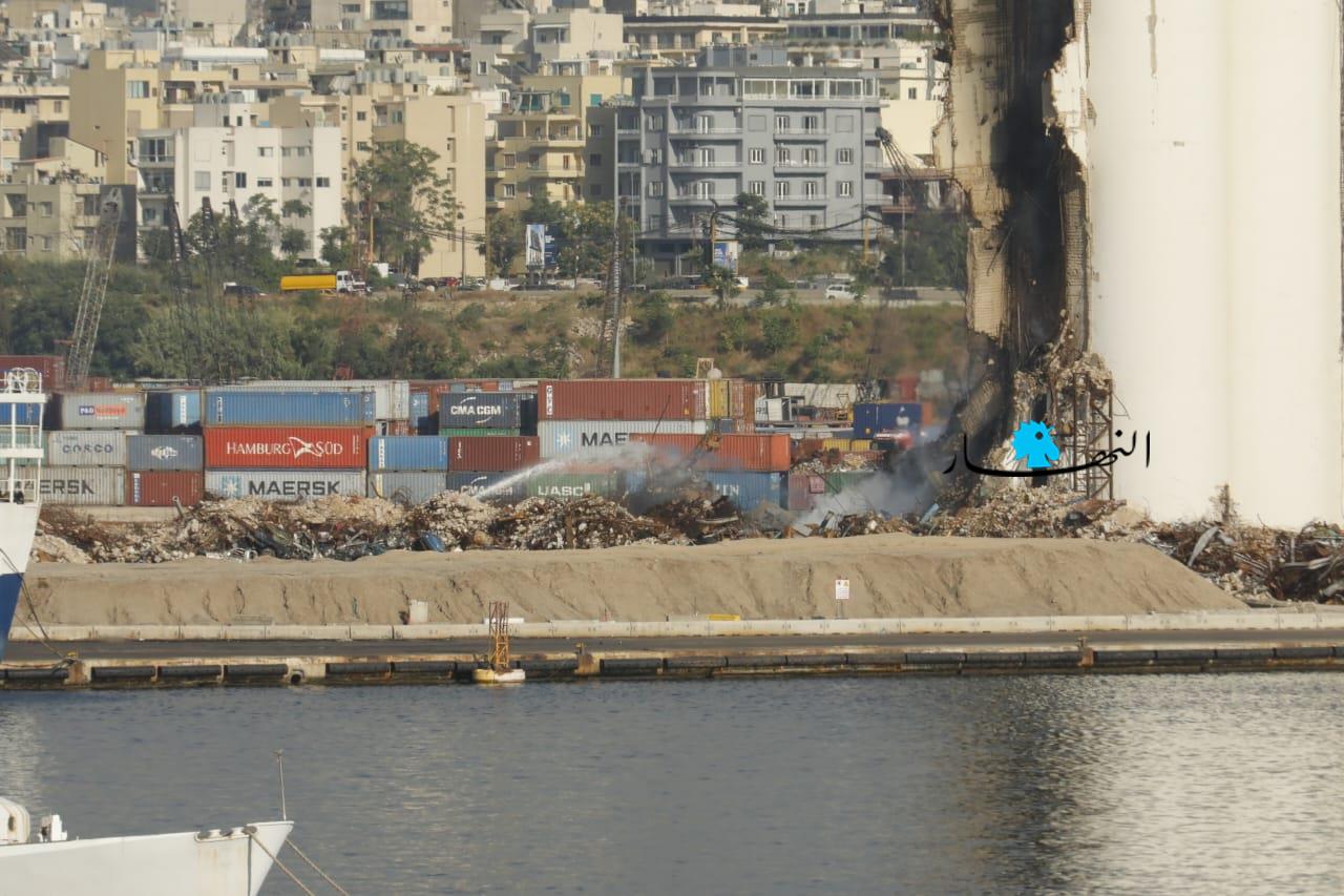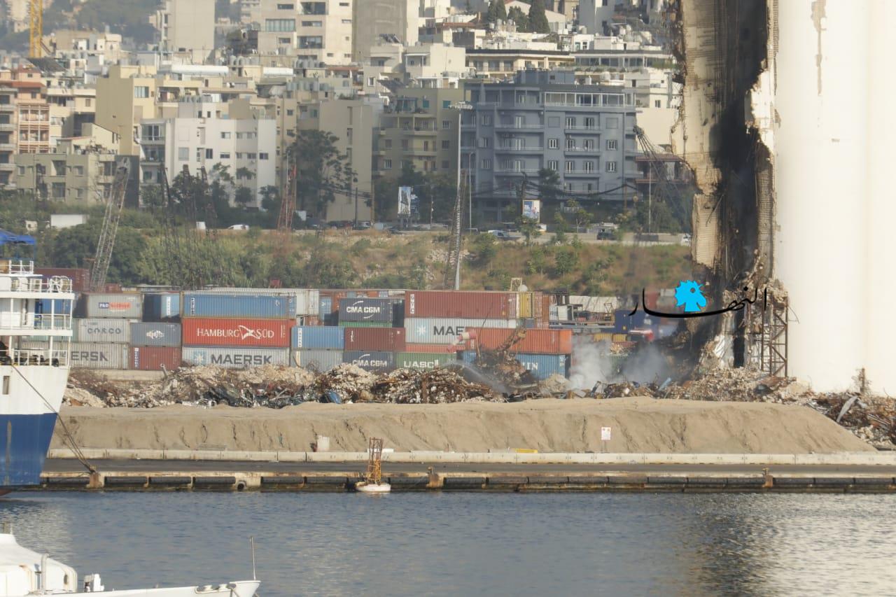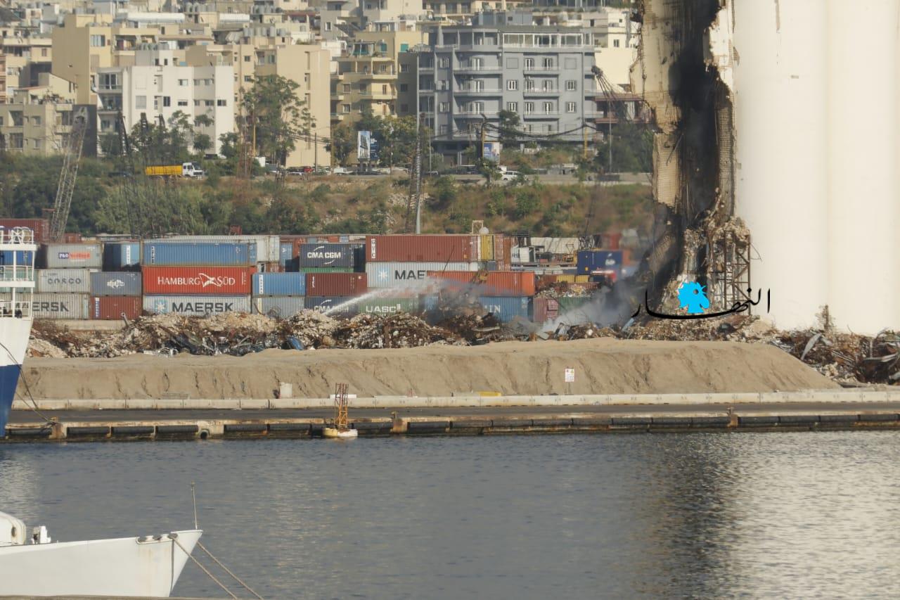 تواصل عناصر الدفاع المدني وفوج إطفاء بيروت العمل على إطفاء الحريق المندلع في أهراءات مرفأ بيروت منذ أسبوعين تقريباً، وتنصبّ جهود الفرق على الاستمرار بتبريد المكان منعاً لتجدُّد الحريق.