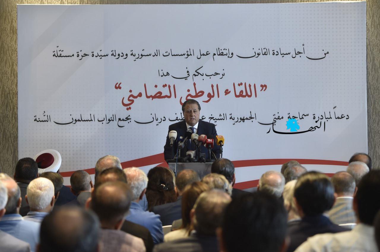 شدّد على أن "إنطلاقاً من حسنا الوطني وإلتزامنا تجاه المجتمع والشعب اللبناني وحرصنا على إنقاذ الكيان، وصوناً للحريات والهوية وثقافة الحياة، وتأميناً لعيشٍ كريم للبنانيين، وحفاظاً على لبنان وطناً سيداً حراً مستقلاً لجميع أبنائه، وإنطلاقاً، من أن لبنان يمر حالياً في مخاض عسير، مع تقاطع الإستحقاقات الدستورية لا سيما دخولنا في مهلة الإنتخابات الرئاسية، ومنعاً من إنزلاق لبنان نحو المجهول. إنطلاقاً من كل ذلك وكل ماسبق، تداعت مجموعة واسعة من القيادات والفعاليات الإسلامية، لإطلاق نداء وطني جامع اليوم، بالإستناد الى مرتكزات وطنية خالصة، المذكورة آنفاً، وذلك بهدف مساندة مفتي الجمهورية الشيخ عبد اللطيف دريان في مبادرته الوطنية بجمع النواب المسلمين السنة ودعم مسعاه للوصول الى توافق إسلامي سني عريض يصب في حماية الدولة اللبنانية بكل ركائزها الدستورية والمؤسساتية والوطنية".