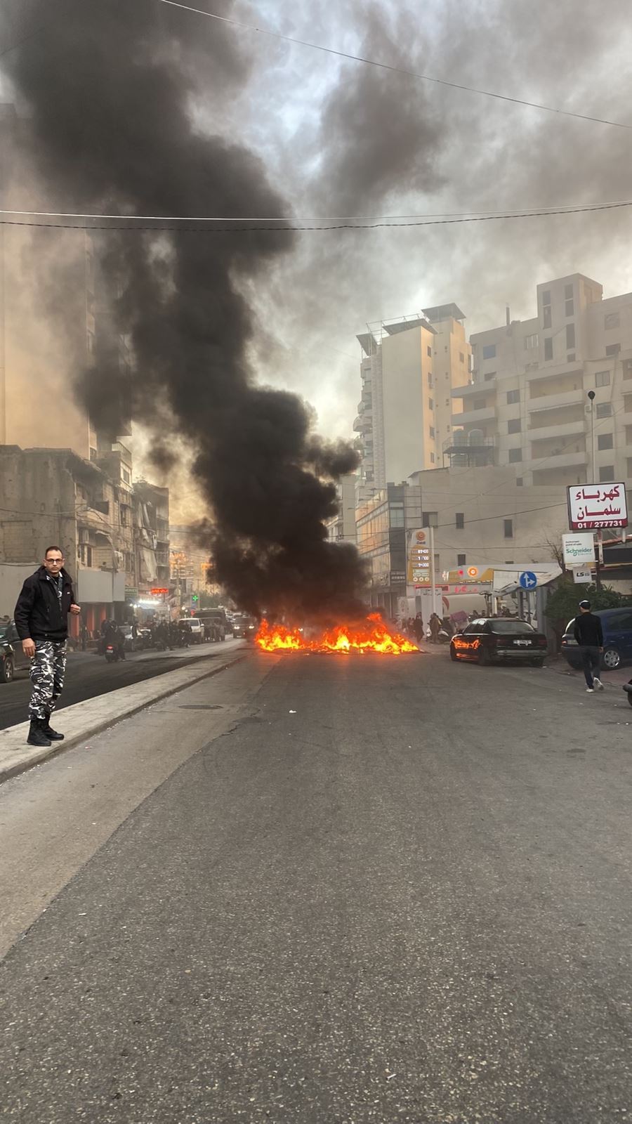 قطع الطريق في محلة الشياح - طريق صيدا القديمة بالاتجاهين وحركة المرور كثيفة في المحلة