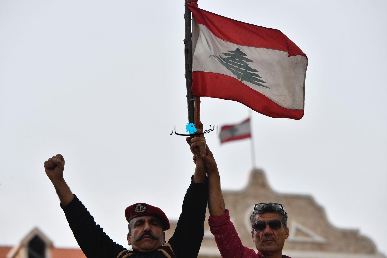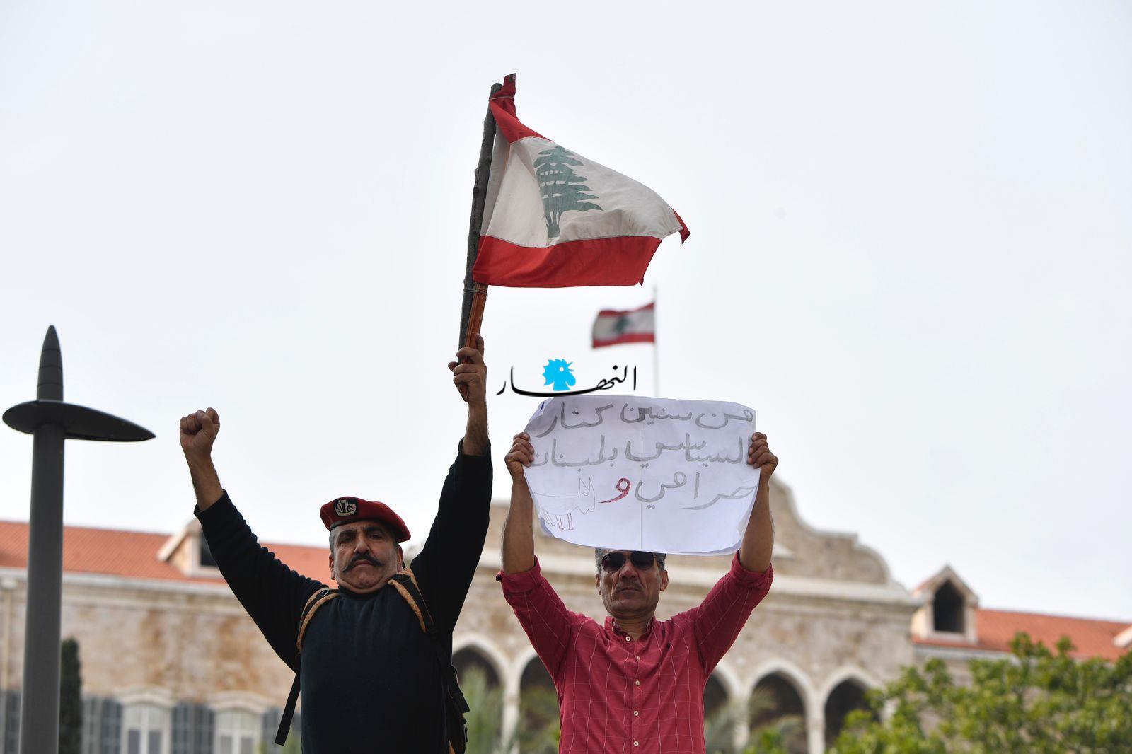 العسكريّون المتقاعدون يرفعون العلم اللبنانيّ في محيط السرايا (حسام شبارو).