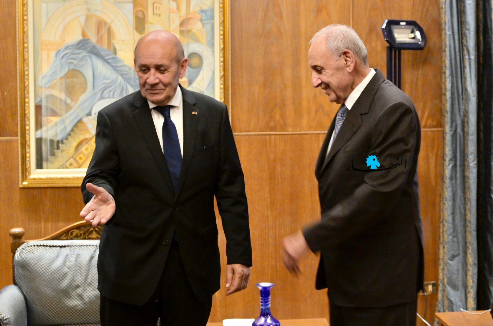 وصل الموفد الرئاسي الفرنسي جان إيف لودريان إلى عين التينة، حيث التقى رئيس مجلس النواب نبيه برّي.