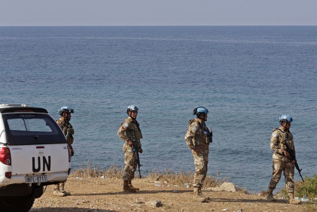 عناصر "اليونيفيل" يقومون بدوريات على الطريق الساحلي في الناقورة (أ ف ب).