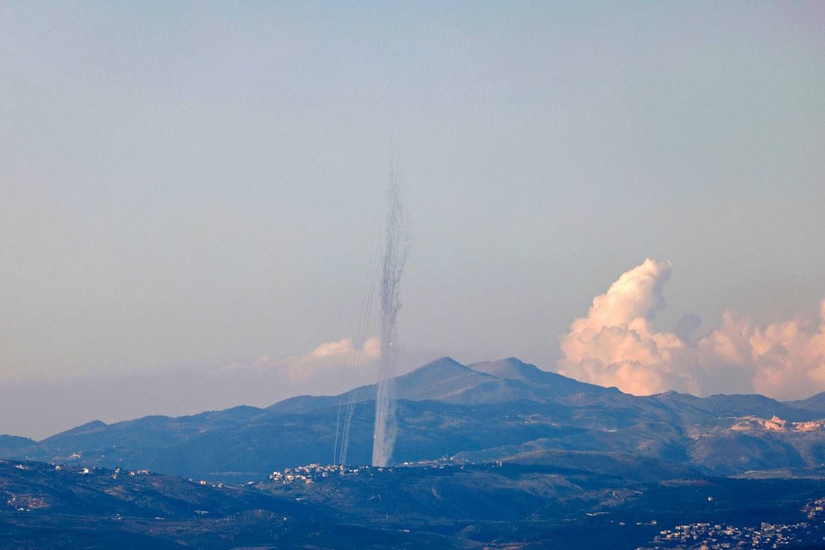 صواريخ تم إطلاقها من لبنان على إسرائيل في 26 شباط (أ ف ب).