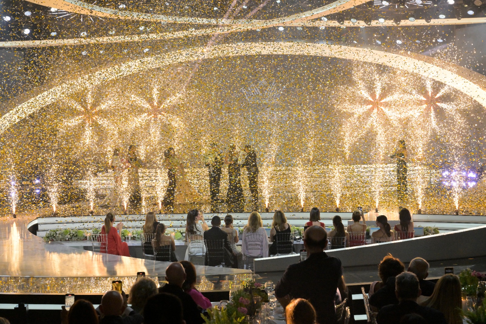 وسلّمت ملكة جمال لبنان السابقة ياسمينا زيتون التاج الذي يحمل أرزة لبنان، إلى الملكة الجديدة، على وَقع أغنية "للصبية الملكة".