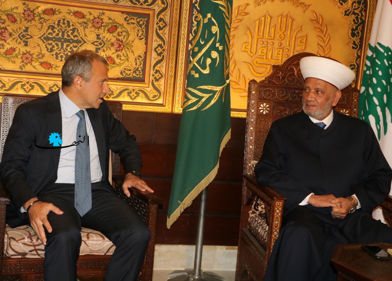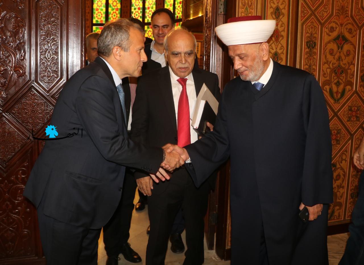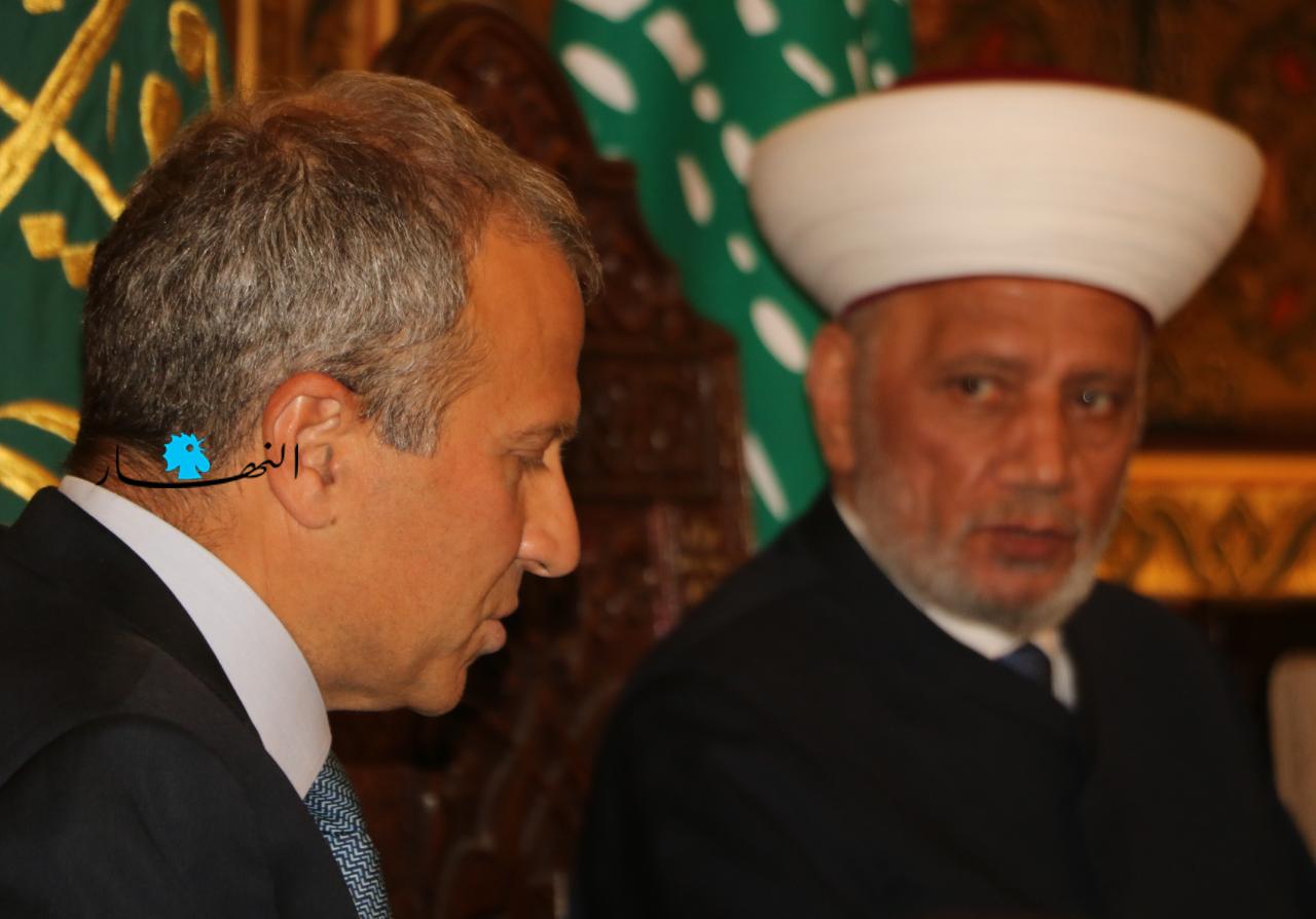 زار رئيس التيار "الوطني الحر" جبران باسيل المفتي عبد اللطيف دريان في دار الفتوى، على رأس وفد من التيار.