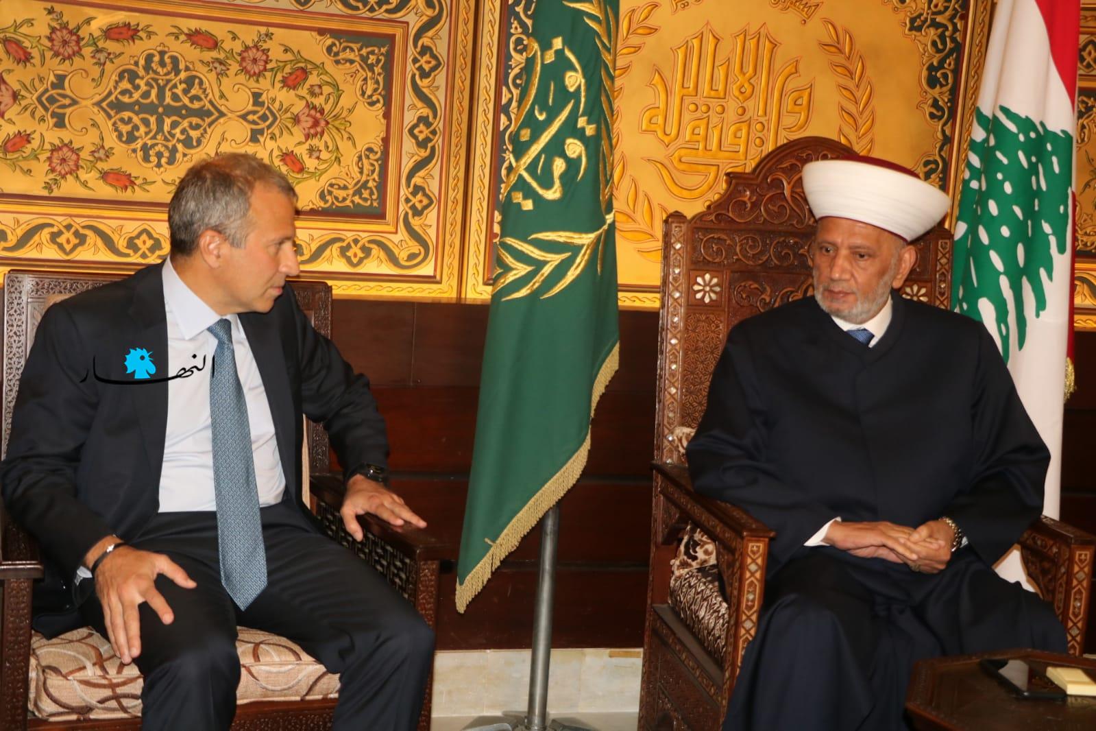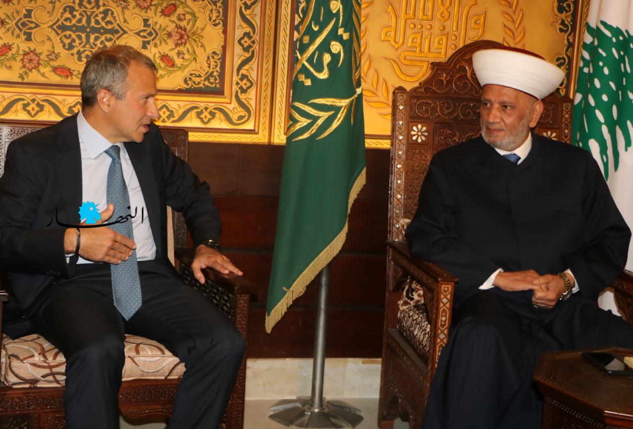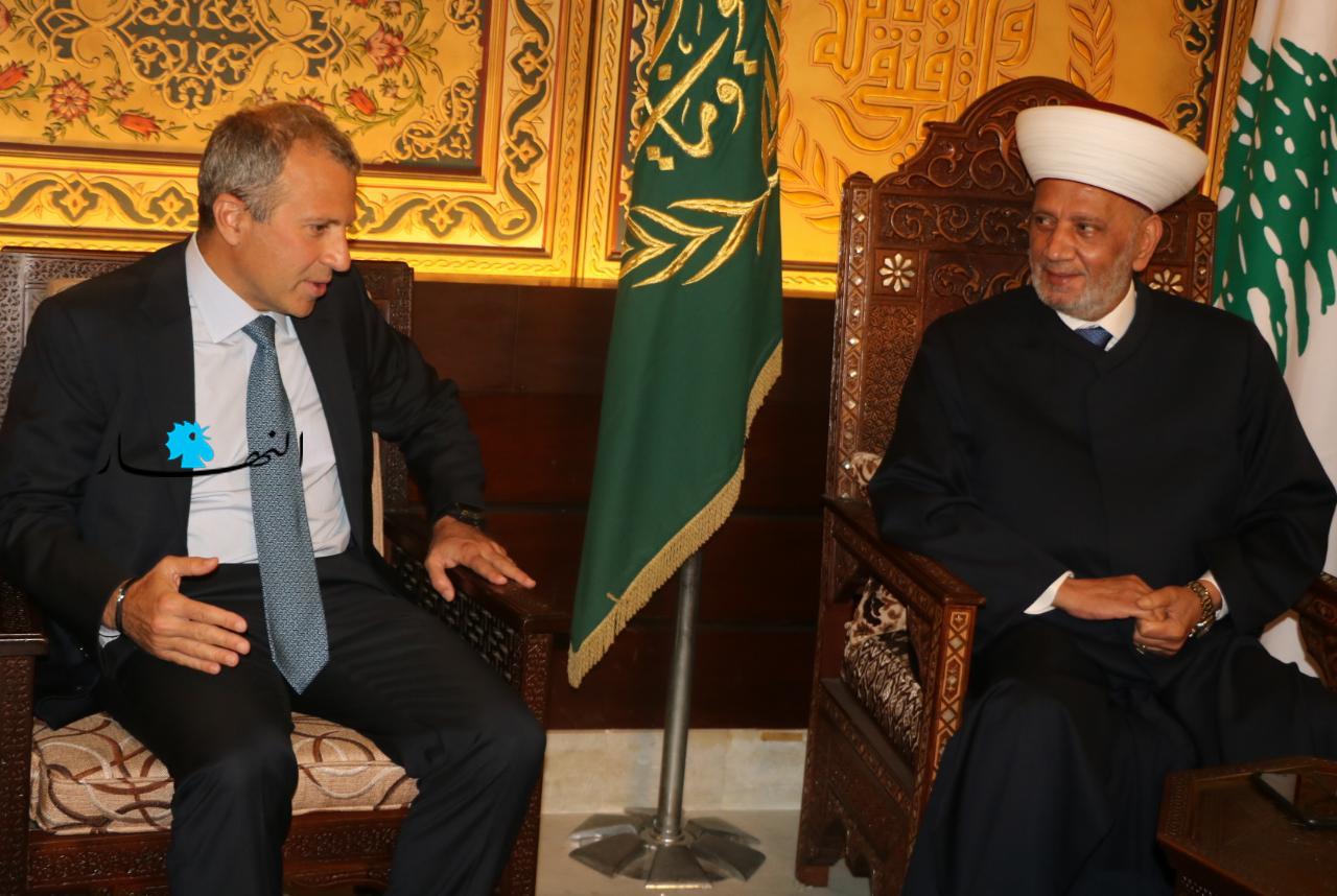زار رئيس التيار "الوطني الحر" جبران باسيل المفتي عبد اللطيف دريان في دار الفتوى، على رأس وفد من التيار.
