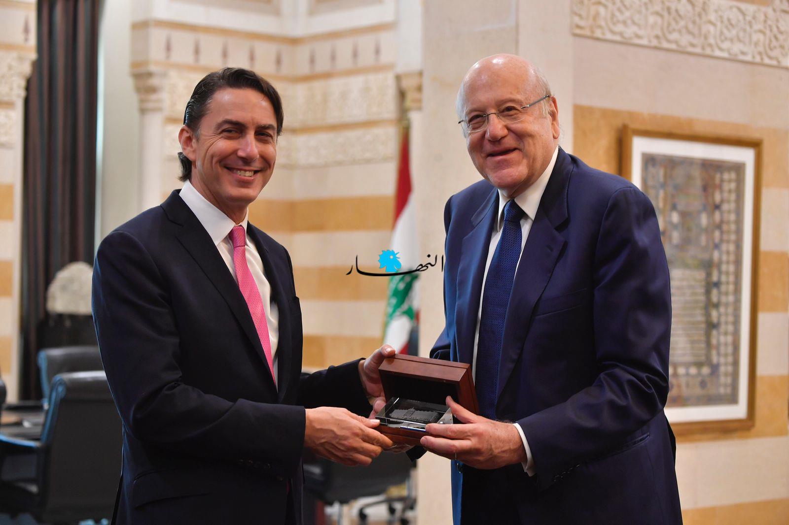 ميقاتي قدّم لهوكشتاين هديّة تذكاريّة: نأمل أن يكون ما تحقّق خطوة أساسية على طريق الإفادة من ثروات لبنان