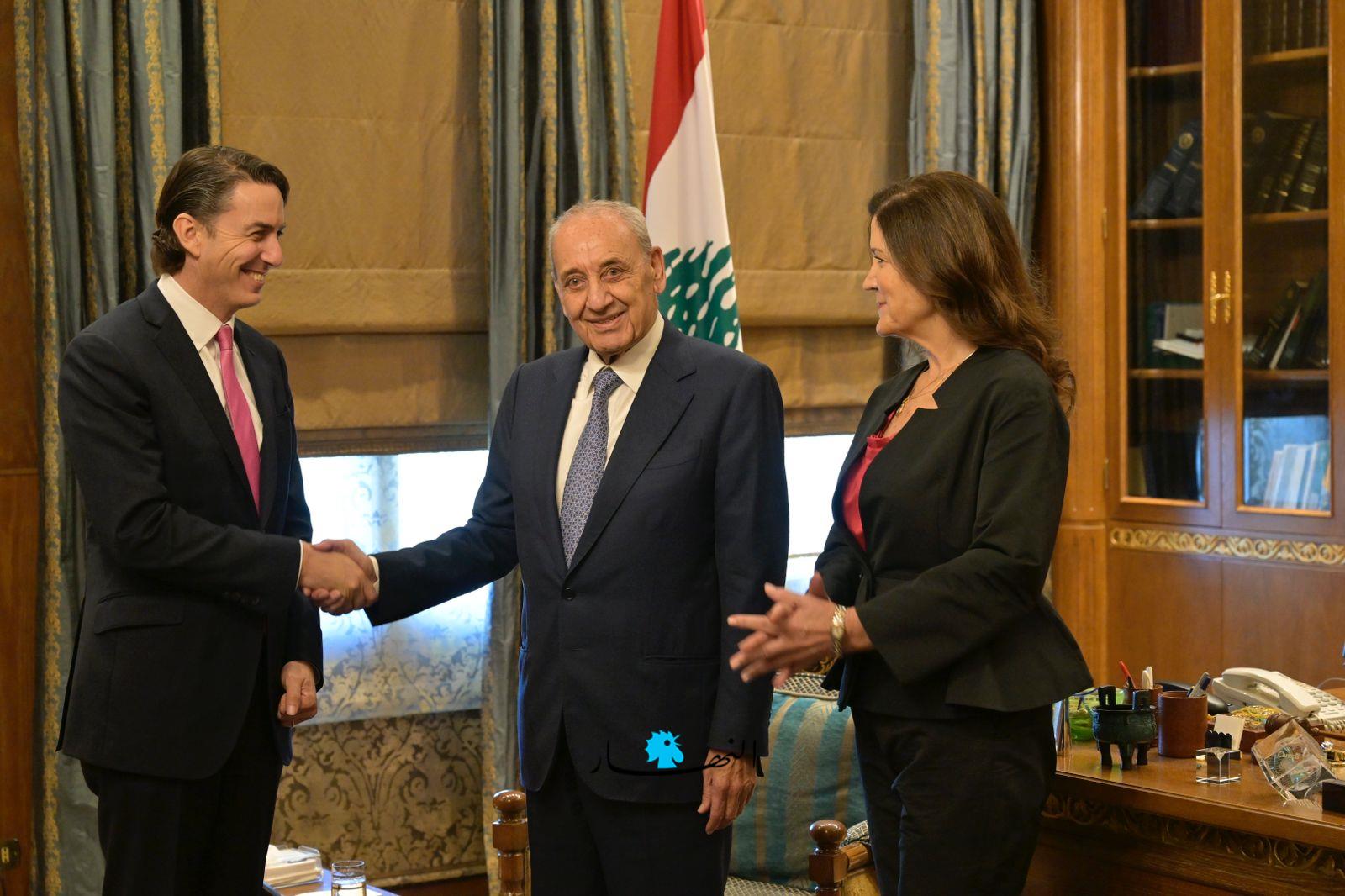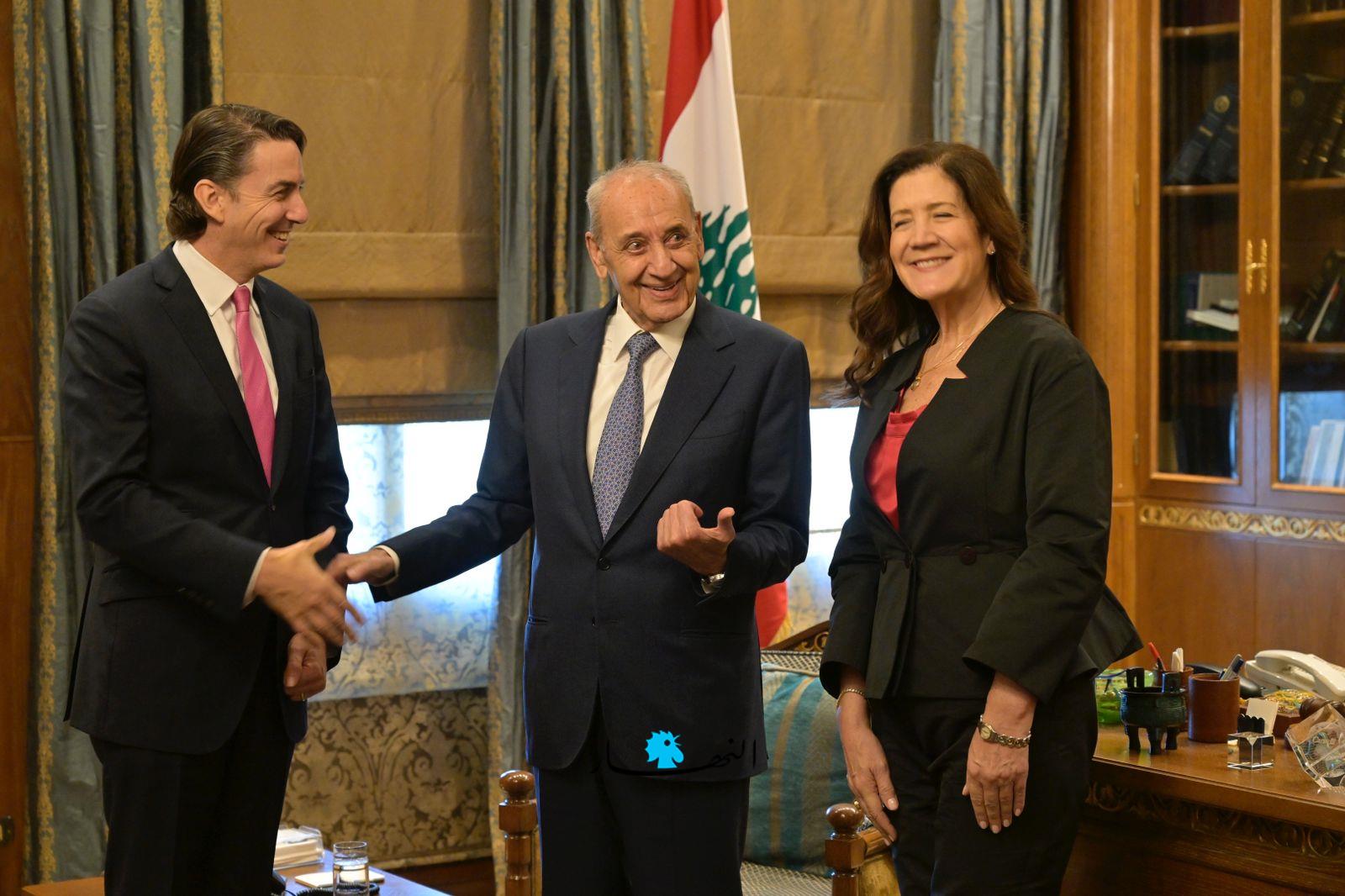 كما التقى الوسيط الأميركي رئيس مجلس النواب نبيه بري في عين التينة، حيث قال بعد اللّقاء: "برّي كان داعماً أساسيًّا للوصول إلى هذا اليوم و الاتفاق سيبقى قائماً وآمناً مهما حصل في الانتخابات الإسرائيلية"
