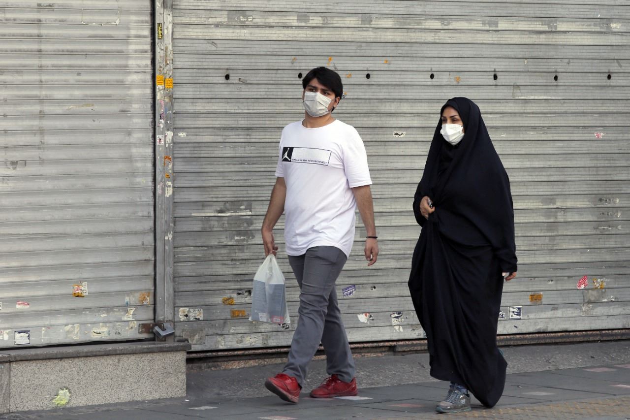 شخصان يمران قرب متجر مغلق في وسط طهران (30 أيلول 2022، أ ف ب).