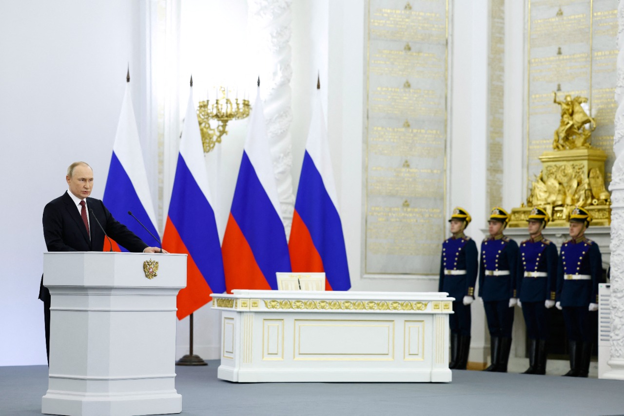 وتابع في كلمة ألقاها بالكرملين أمام المئات من كبار السياسيين الروس، أن روسيا ستدافع عن أراضيها الجديدة بكل الوسائل المتاحة لها، وهي تصريحات قد تشير إلى تصعيد في الصراع مع أوكرانيا.
