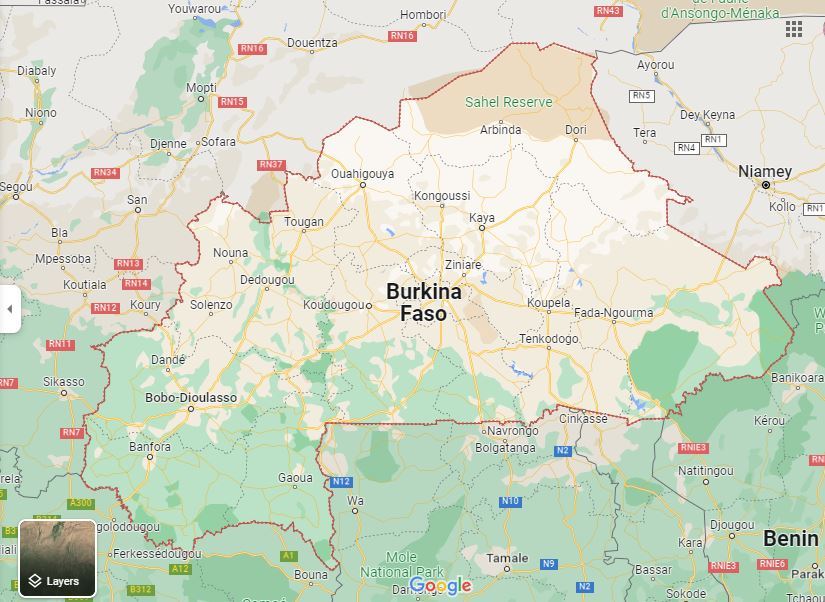 خريطة لبوركينا فاسو (غوغل مابس).