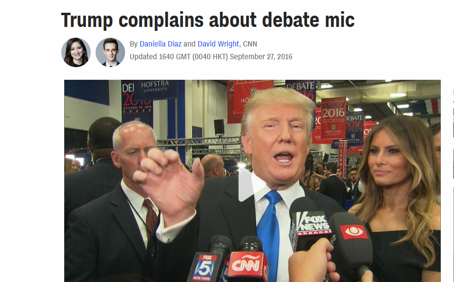 في الواقع، جاء "تذمره" بعد المناظرة التلفزيونية الأولى بينه كمرشح جمهوري للرئاسة، ومنافسته الديموقراطية هيلاري كلينتون، مساء الاثنين 26 ايلول 2016، في جامعة هوفسترا في هيمبستيد بنيويورك، على ما أورد موقع "سي أن أن" (هنا).