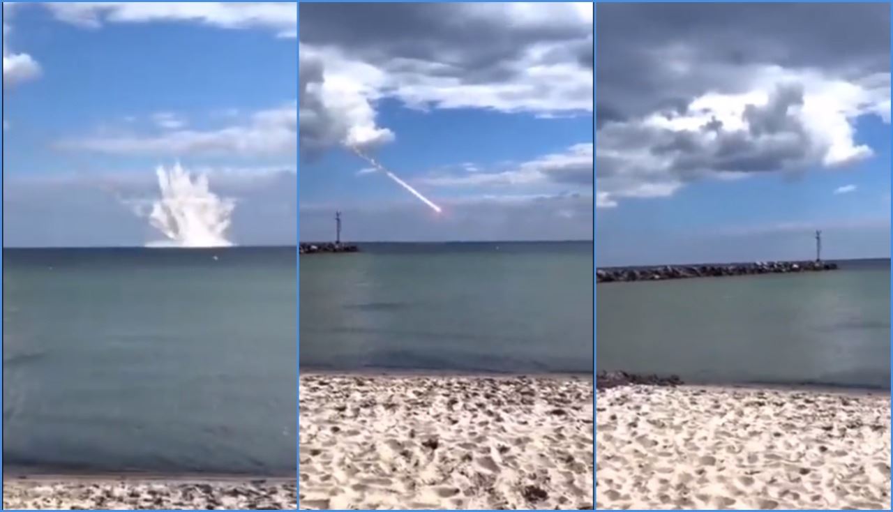 الوقائع: 8 ثوان فقط مدة الفيديو. الكاميرا تركز على بحر هادئ قرب شاطئ، على ما يبدو، قبل ان يشق نيزك غيوما تجمعت فوق المكان ويضرب البحر، مخلّفا وراءه انفجارا قويا. وقد تكثّف التشارك في هذه المشاهد أخيرا، عبر حسابات، عربية وأجنبية (هنا، هنا، هنا، هنا، هنا، هنا...)، مرفقة بمزاعم أن "نيزكا يضرب بحر البلطيق". وقد سبق ان انتشر الفيديو في الاشهر الماضية بمزاعم ان "نيزكا يضرب ألمانيا وفجّر البحر" (هنا، هنا، هنا، هنا).