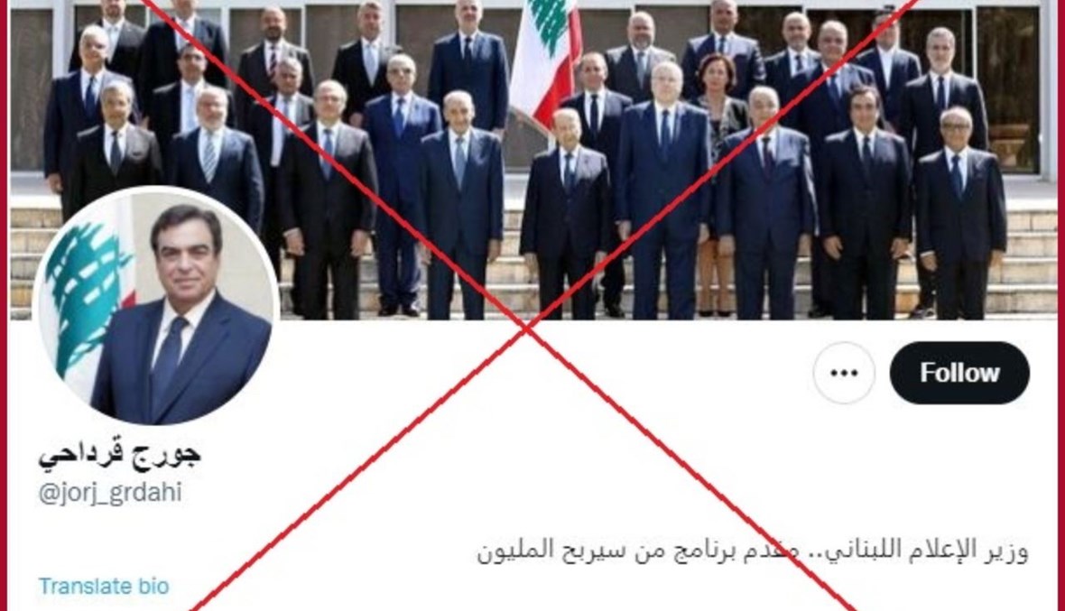 فالحساب جورج قرداحي jorj_grdahi@ زائف، وليس الحساب الرسمي لقرداحي، وان كان يعرّف بنفسه أنه حساب "وزير الإعلام اللبناني مقدم برنامج من سيربح المليون".