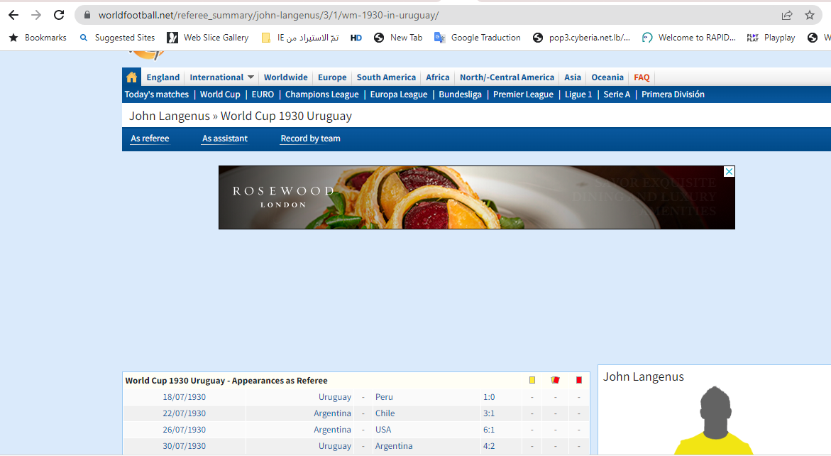 هل كان الحكم البلجيكي جون لانجينوس John Langenus حكم أول مباراة في كأس العالم عام 1930؟
