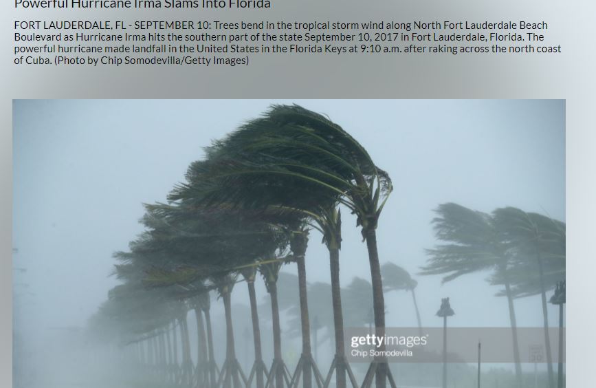 في ايلول 2018، ضرب الإعصار فلورانس الساحل الشرقي للولايات المتحدة، متسببا بانقطاع الكهرباء عن أكثر من 600 ألف منزل وانهيار عدد من المباني ومحاصرة السكان. وبلغ مركز الإعصار ولاية نورث كارولينا مصحوبا برياح وصلت سرعتها إلى 150 كلم في الساعة، قبل أن تتراجع قليلا. وصدرت تعليمات بإجلاء 1.7 مليون شخص من المناطق الخطيرة، وفقا لتقارير اعلامية (هنا، هنا، هنا).