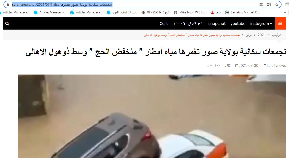 كذلك، نشر موقع ولاية صور في سلطنة عمان الصورة في 30 تموز 2021، ضمن تقرير عن السيول التي اجتاحت المنطقة يومذاك بتأثير من "منخفض الحج".