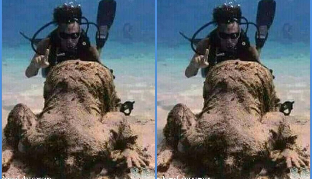إلا أن الصورة ليست لصخرة على شكل إنسان يسجد في أعماق البحار.