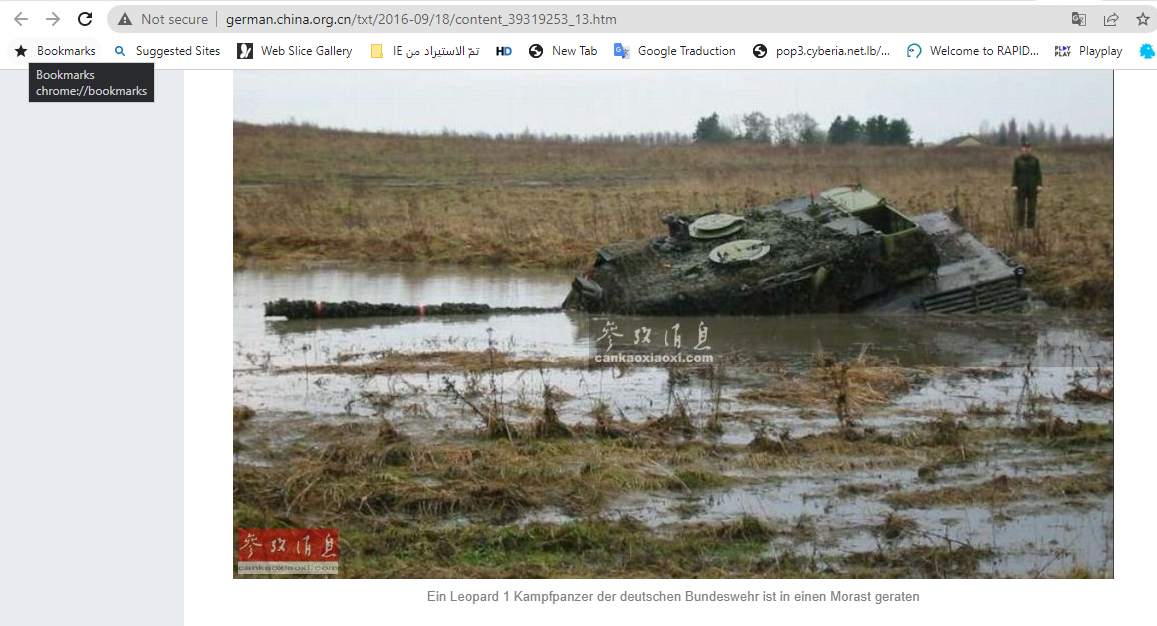كذلك، نشر موقع german.china.org هذه المجموعة من الصور، في 18 ايلول 2016 (هنا)، مع شرح بالالمانية: "دبابة قتال رئيسية من طراز ليوبارد1 تابعة للبوندسوير الألماني علقت في مستنقع". ولم يضف اي تفاصيل اخرى عنها.
