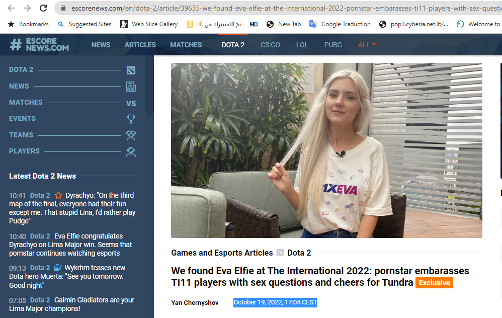 نعثر عليها منشورة في هذا الموقع (هنا) في 19 تشرين الاول 2022، ضمن تقرير عن لقاء حصل معها في سنغافورة خلال مناسبة The International 2022.