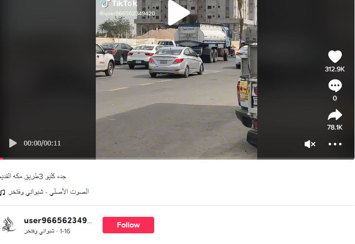 فالبحث عن الفيديو يقودنا الى حساب في تيك توك نشر هذا المقطع في 16 كانون الثاني 2023 (هنا)، مع تعليق: "جده كليو 3طريق مكه القديم".
