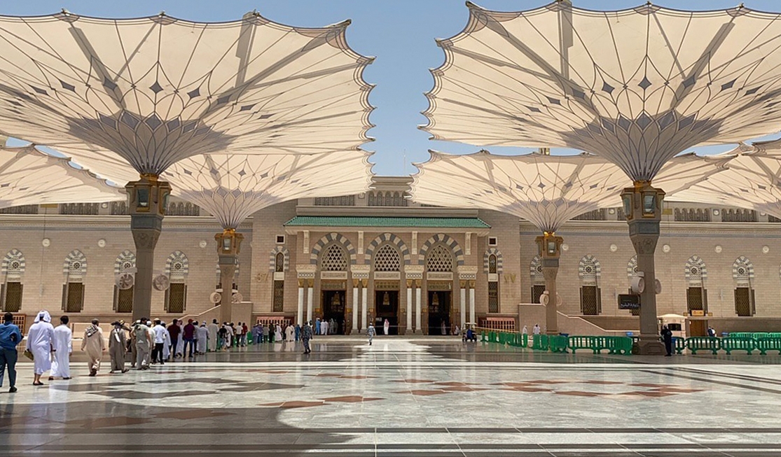 فالشكل الذي يبدو مشابهاً لسلّمٍ ما هو إلا الفراغ بين المظلاّت في باحة المسجد النبويّ في المدينة المنورة.