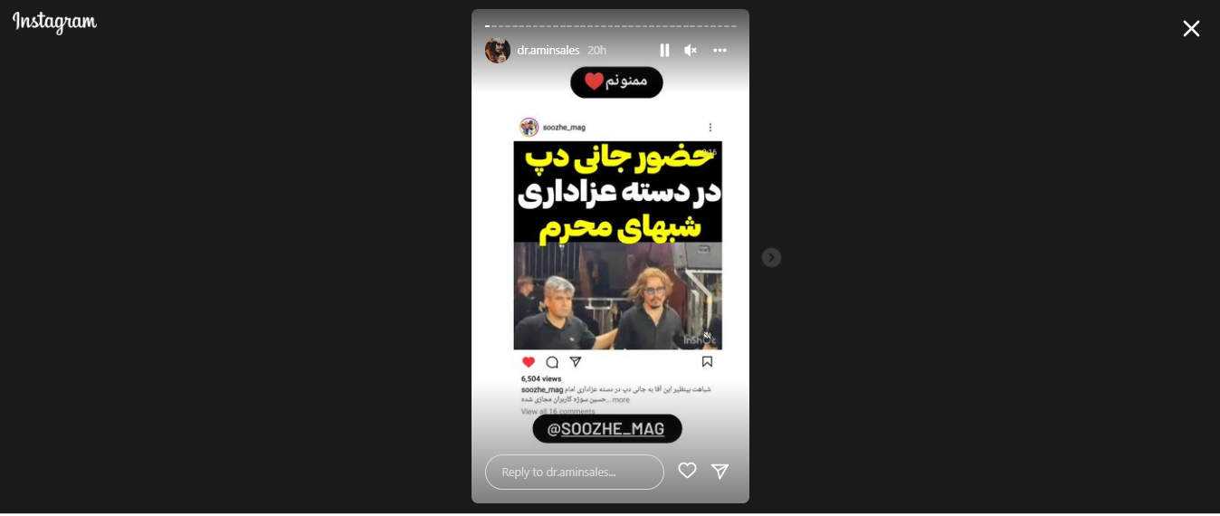 وقد شارك أمين في صورتيه والفيديو المتناقلة له في مجلس العزاء، عبر خاصية الستوريز في حسابه في انستغرام (هنا).