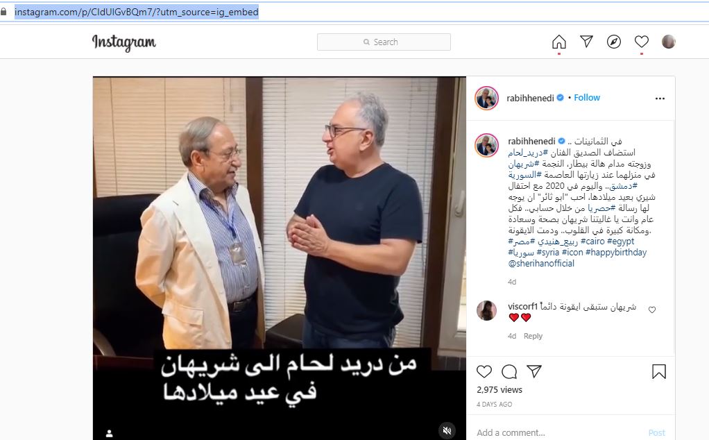 وحسما ايضا للأمر، نشر الصحافي ربيع الهنيدي، في حسابه في انستغرام في 6 كانون الاول 2020، مقطع فيديو مع لحام الذي وجه فيه تهنئة إلى الفنانة المصرية شريهان، في عيد ميلادها الـ56. وقال (بالعامية): "انا كثير كثير كثير مشتقلك. وما بنسى الأربع خمس تيام يللي قضيتن عنا بالبيت. يا ريت منرجع منشوفك مرة تانية أو تشوفينا عندك...".