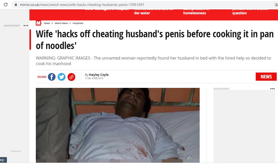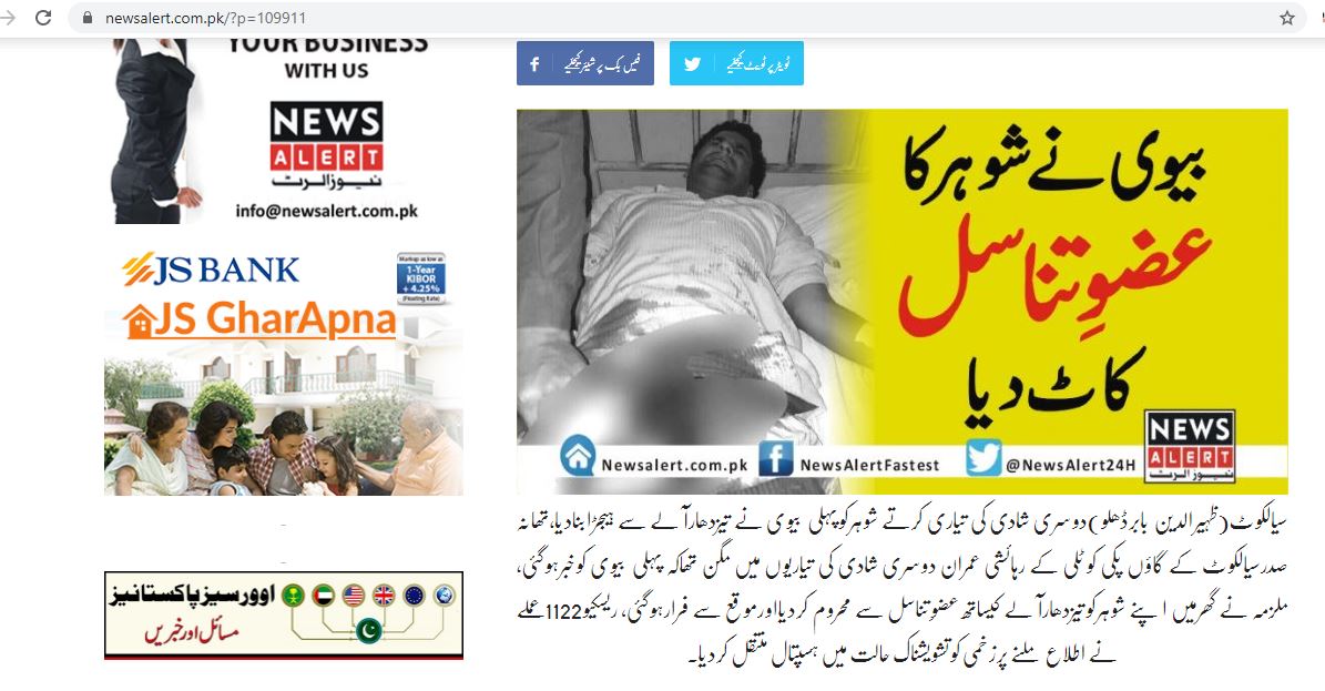 ولكن بخلاف المواقع الاجنبية الاخرى، لم تذكر المواقع الباكستانية ان "الزوجة طبخت عضو زوجها، وتناولته في طبق من الباستا"، كما يتم زعمه.