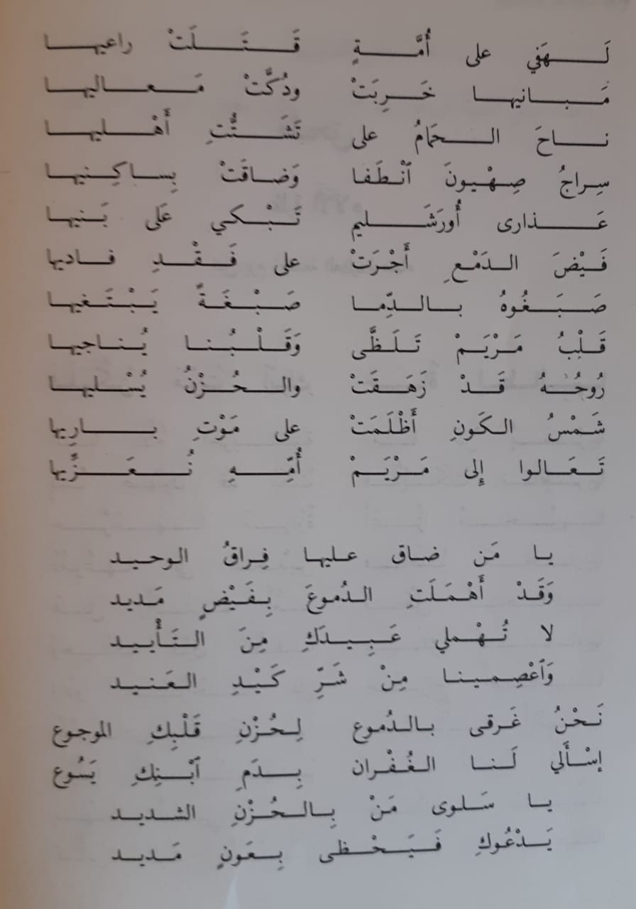 وهنا نص طلبة الآلام أو ترتيلة أنا الام الحزينة (كتيب رتبة سجدة الصليب يوم الجمعة الآلام):