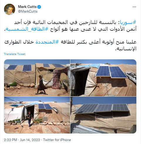 Solar power is the cheapest & most reliable source of energy in many of the camps for displaced people in northwest #Syria