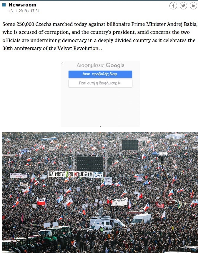 وفي ذلك الحين، في الثالث والعشرين من حزيران 2019، خرجت تظاهرات ضخمة في تشيكيا، وُصفت بأنها الأكبر منذ سقوط الشيوعية في العام 1989.