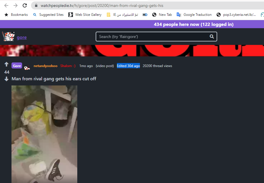 فالبحث عنه، بتجزئته الى مشاهد ثابتة (Invid)، يوصلنا اليه منشورا في مواقع او منتديات (هنا، هنا)، في 16 كانون الثاني 2023 بعنوان: "قطع اذني رجل من عصابة منافسة". و"على الارجح في اسبانيا"، على ما ذكر الحساب ناشر الفيديو، مشيراً الى "لهجة اسبانية للرجل".