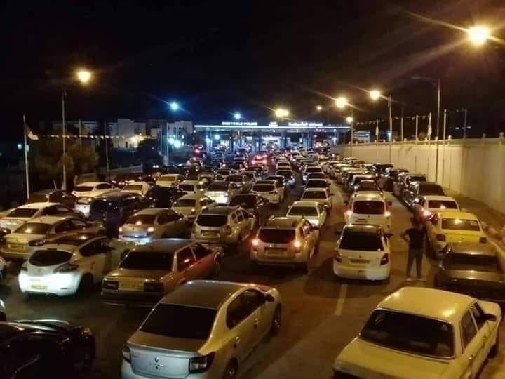 تُظهر الصورة ما يبدو أنها نقطة حدودية تكتظّ بالسيارات.