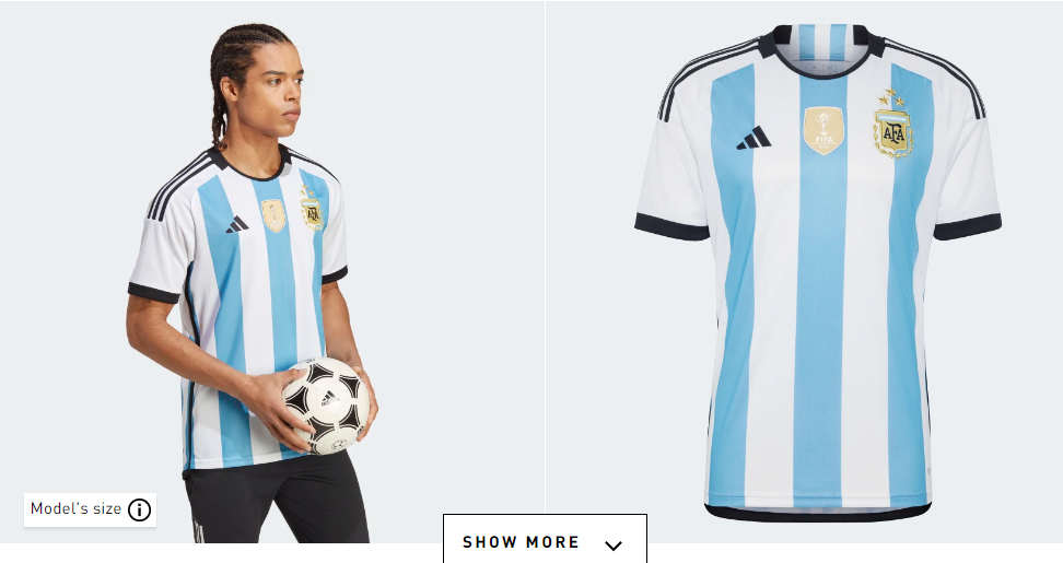 فبالبحث أولا في موقع شركة أديداس (هنا، هنا، هنا)، لم يمكن العثور على هذين القميصين المتناقلين، ولا على خبر بشأنهما. في الواقع، عدد من القمصان التي تنشرها أديداس، ضمن القسم المخصص لـ"ملابس الأرجنتين كأس العالم"، هي بالالوان المعتادة للمنتخب الارجنتيني.
