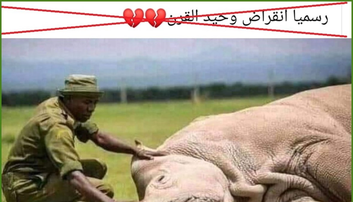 تداول مستخدمون لمواقع التواصل الاجتماعي خبراً عن "انقراض حيوانات وحيد القرن تماماً عن الأرض"، مرفقاً بصورة لأنثى من هذه الحيوانات الضخمة مطروحة أرضاً. صحيح أن بعض فصائل وحيد القرن قد انقرضت في السنوات والعقود الماضية، لكن فصائل أخرى من هذا النوع ما زالت تعيش في البريّة بالآلاف، وإن انخفض عددها بشدّة في السنوات الماضية من جرّاء الصيد غير القانوني.