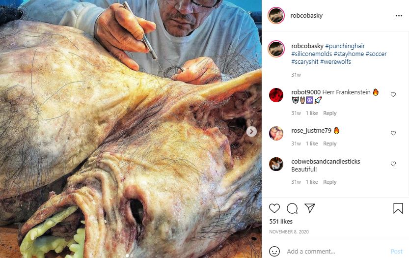 وقد شارك كوباسكي المولع بصنع مجسمات "الوحوش"، متابعيه في عملية انجاز وحشه او "مستذئبه" (werewolf)، ابتداء من 13 تشرين الاول 2020، وكيفية تطورها (هنا، هنا، هنا، هنا، هنا)، مرورا بزرع الشعر في المجسم، مستخدما قوالب سيليكون (siliconemolds#) في صنعه، وفقا لوسم استخدمه في الشرح عنه (هنا، هنا)، وصولا الى اتمام انجازه (هنا).