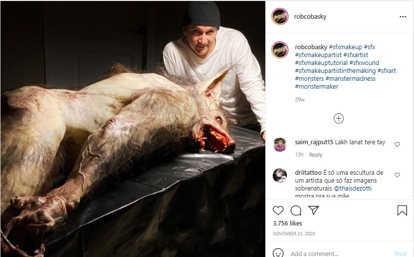يقود البحث عن الفيديو، باستخدام كلمات مفاتيح بالانكليزية، مثل werewolf وkilled، الى خيوط (مثل هنا، هنا) توصلنا الى النحات والاختصاصي بالمؤثرات الخاصة SFX الفنان جوزيف- روب كوباسكي Joseph-Rob Cobasky، الذي نشر الفيديو المتناقل في حسابه في انستغرام في 7 آذار 2021، مرفقا بوسم moviemagic#، وايضا في صفحته في الفايسبوك في 9 حزيران 2021.