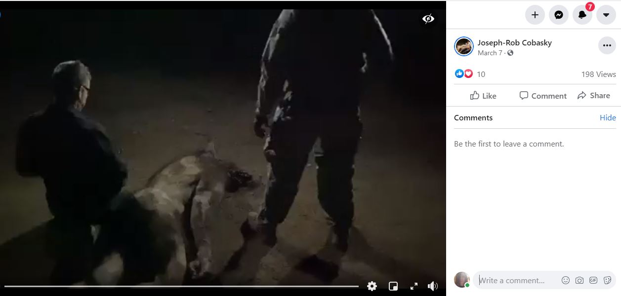 وفي 7 آذار 2021، نشر كوباسكي، في الفايسبوك، فيديو لعملية تصوير "وحشه"، ممددا على الارض. وتشبه فيه وضعية الوحش والخلفية والاضاءة، الى حد كبير، وضعية الوحش والخلفية والاضاءة في الفيديو الذي نشره للوحش في حسابه في انستغرام في 7 آذار 2021.