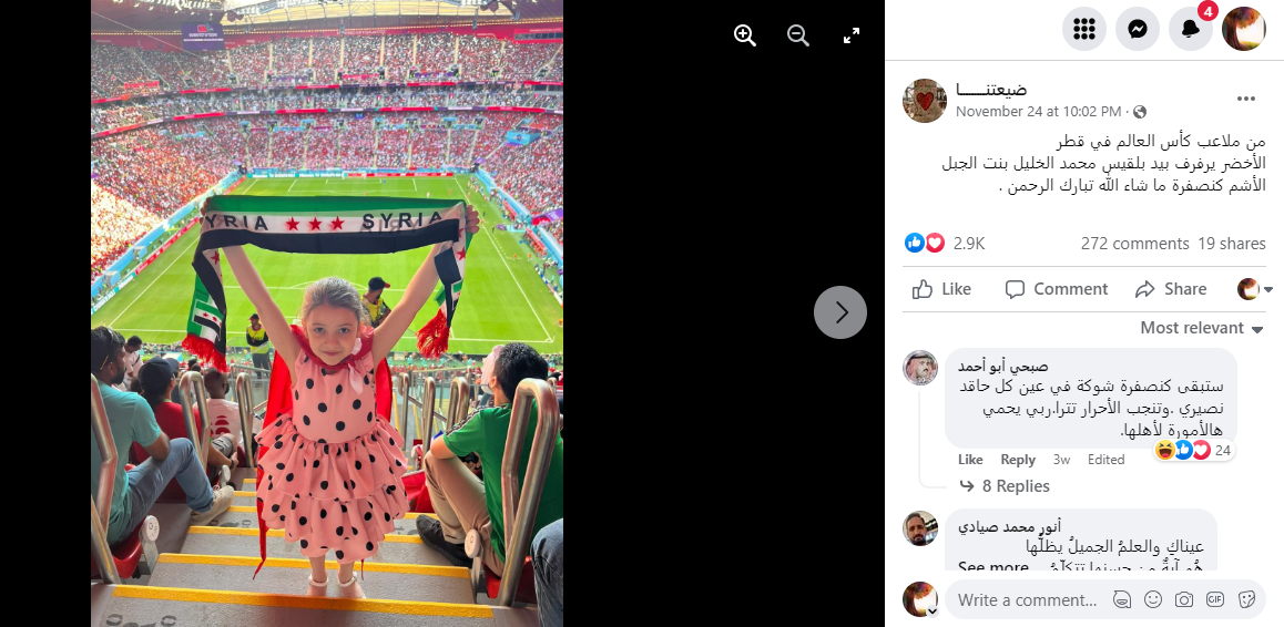 هل الفتاة السورية من مخيم اللجوء السوري هي التي تظهر في الصورة الأخرى في ملاعب قطر؟