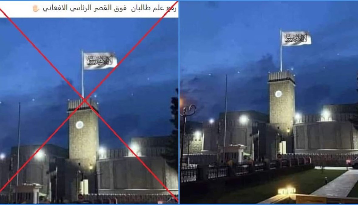 تنتشر صورة في مواقع اخبارية وووسائل التواصل الاجتماعي بمزاعم انها تظهر "رفع علم طالبان فوق القصر الرئاسي الأفغاني"، بعد دخولها العاصمة كابول وفرار الرئيس الافغاني أشرف غني من أفغانستان. غير أن هذه المزاعم خاطئة. الصورة مركبة، بحيث تمّ استبدال العلم الافغاني في الصورة الاصلية بعلم طالبان. والصورة الأصلية تعود آثارها الى آذار 2020. FactCheck#