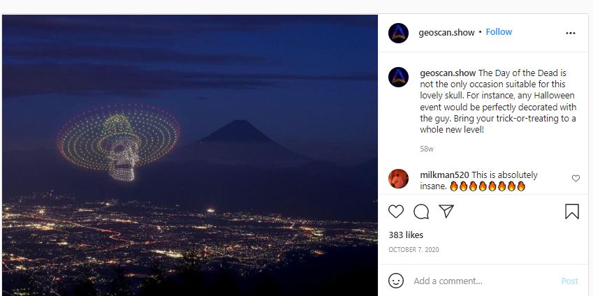 #Fake #DiaDeMuertos photo and 3 others were originally shared by #GeoscanGroup, a drone show company based in St. Petersburg, Russia, as renders of their work: https://t.co/36O2hFb00Yhttps://t.co/9EtTahdUDmhttps://t.co/geBTr9ALqHhttps://t.co/cu782uqUyB#DayOfTheDead #FactCheck pic.twitter.com/0pmSmb7IDO