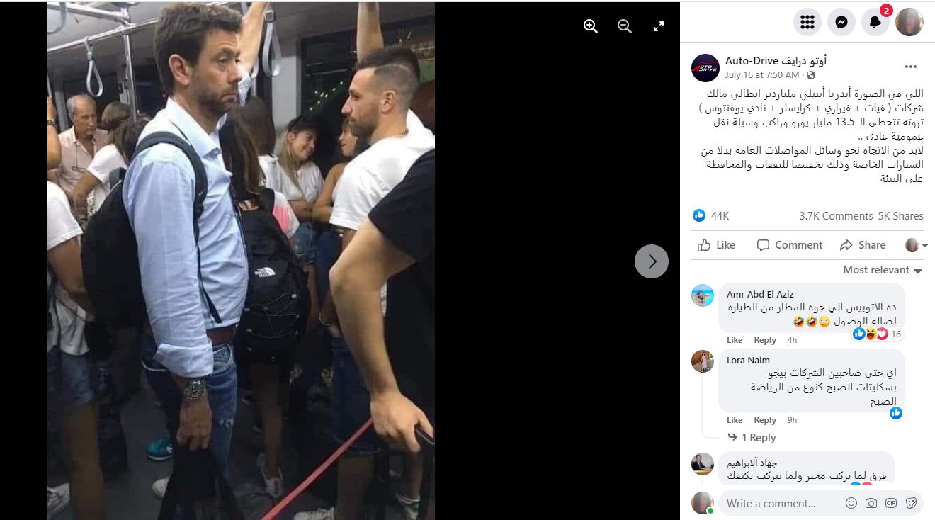 "رئيس نادي يوفنتوس أندريا أنييلي خلال ركوبه وسيلة نقل عموميّة"؟ إليكم الحقيقة FactCheck#