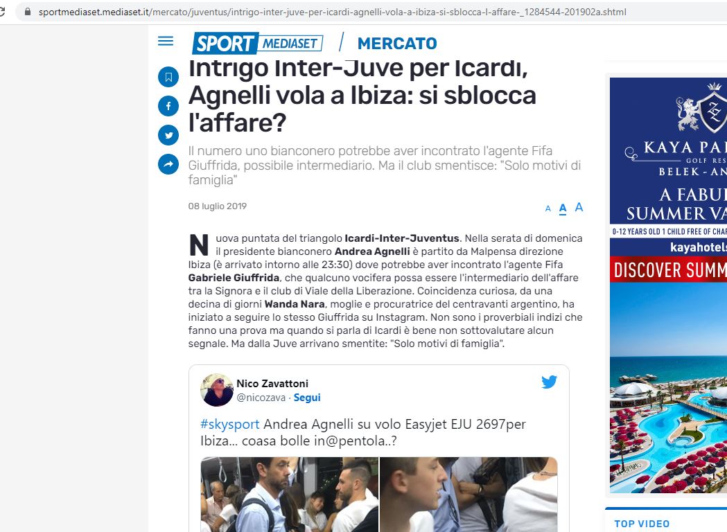 وفي وقت تم الترجيح ان رحلته تلك استدعتها "مهمة تفاوض على صفقة لاعب"، فقد نفت مصادر فريق يوفنتوس ذلك، وفقا لموقع corriere، مشيرة الى انه كان يسافر لأسباب شخصية.