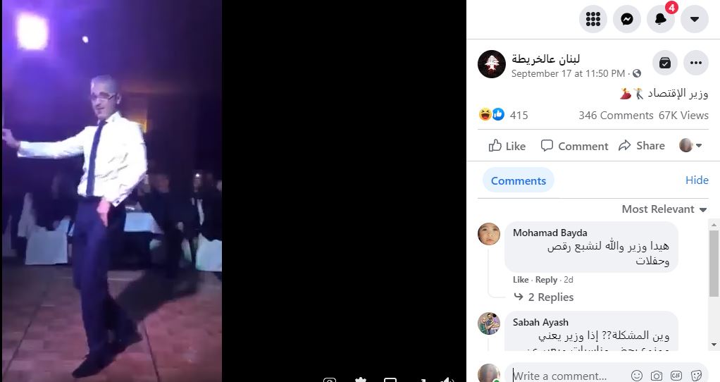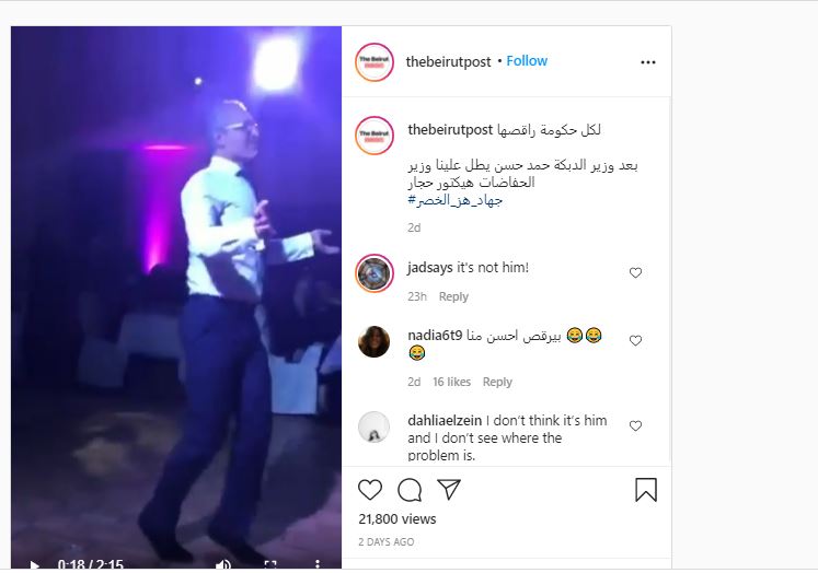 كذلك، زعم مستخدمون انه وزير الاقتصاد اللباني (امين سلام)، راقصا.