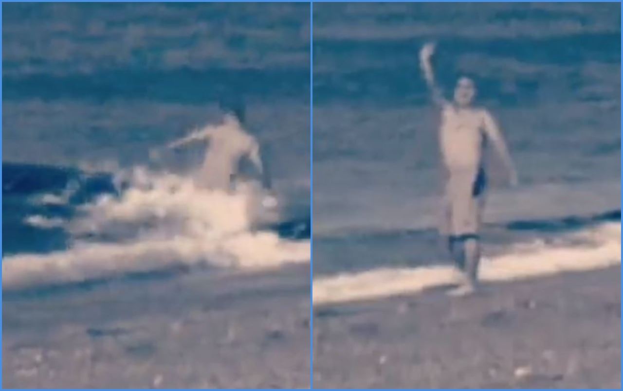 يبدو في الفيديو (هنا ايضا) رجل يمشي على شاطئ. وفجأة يهاجمه حوت ضخم. وعلّق ناشرو الفيديو بالقول "حوت الأوركا ماكر" متمنّين السلامة للرجل.