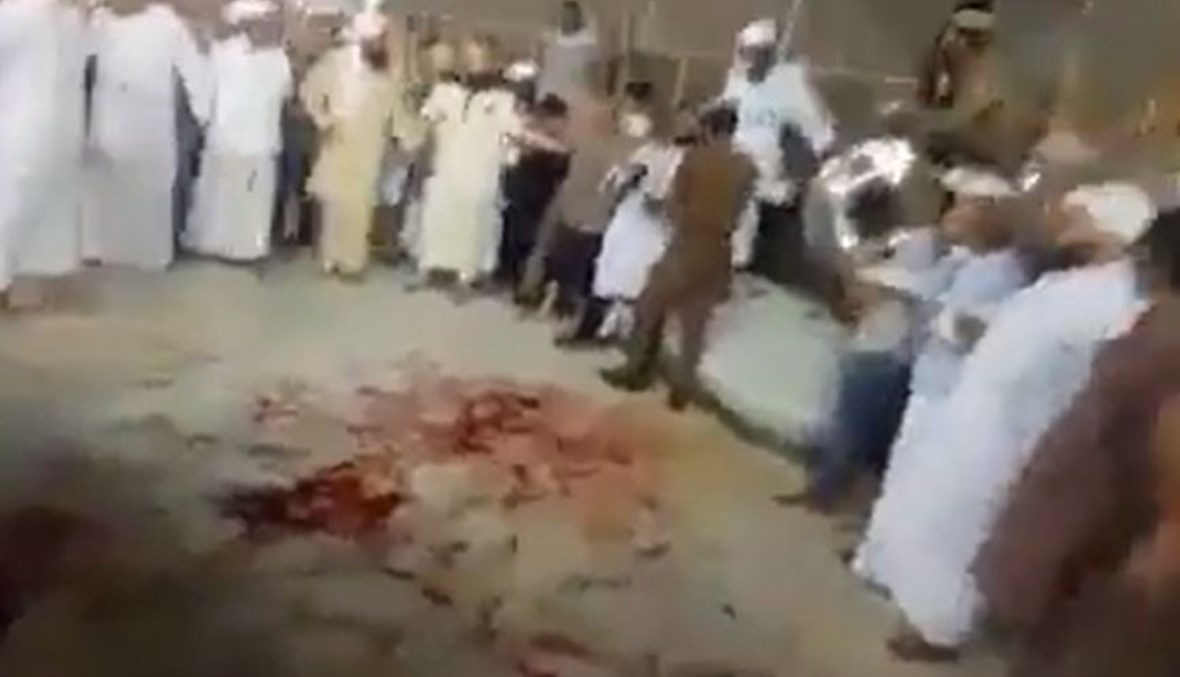 يُظهر الفيديو بقعة من الدم على الأرض في الحرم المكيّ بجوار الكعبة، ويتحلّق حولها عدد من الحجاج أو المعتمرين وعناصر الأمن.