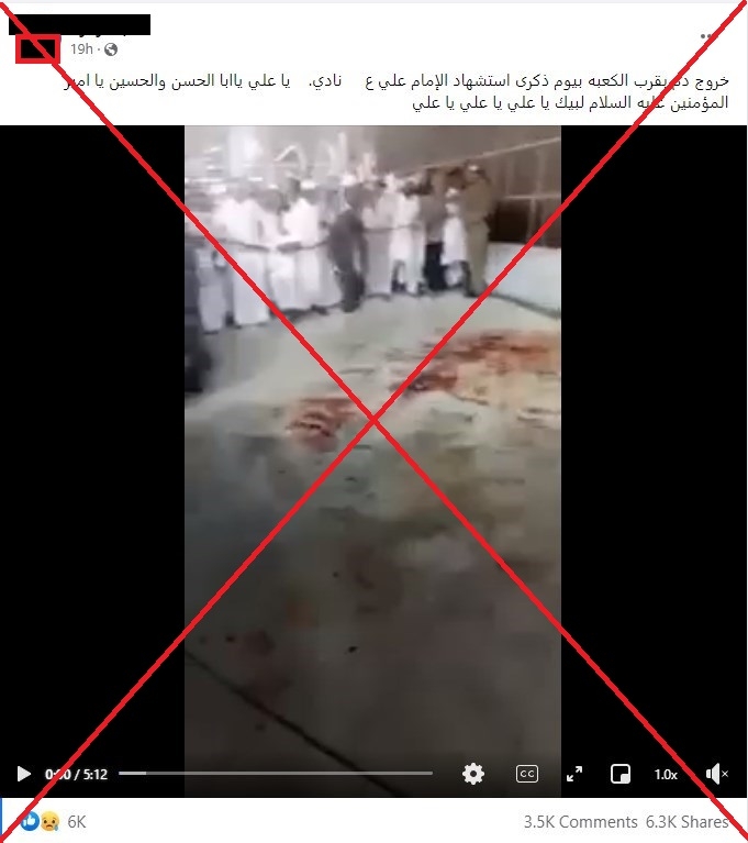وجاء في التعليقات المرفقة أن هذا الفيديو يُظهر خروج الدم من الأرض في الحرم في ذكرى مولد الإمام عليّ بن أبي طالب. وذهبت منشورات أخرى للقول إن الدم خرج في ذكرى مقتل ابنه الحسين، حفيد النبيّ محمّد، في حربه ضدّ الأمويّين. وسبق أن ظهر هذا المقطع أيضاً مع الادّعاء بأنه يُظهر بقايا رجل أراد تنفيذ تفجير انتحاريّ في الحرم المكّي.
