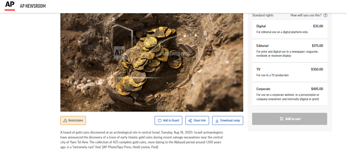 وقد أعلنت سلطة الآثار الإسرائيلية، الاثنين 17 آب 2020، "اكتشاف كنز نادر يضم 425 قطعة نقدية ذهبية من فترة الخلافة العباسية، يعود تاريخها إلى ما يقرب من 1100 عام، في عملية تنقيب أثري بالقرب من مدينة يفني في وسط البلاد (هنا، هنا، هنا، هنا...).