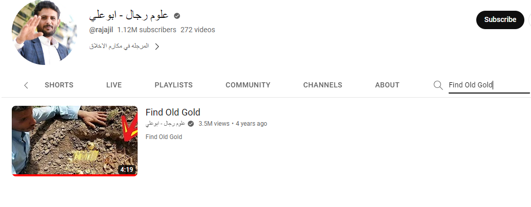 وتنشر القناة فيديوات للعثور على كنوز وذهب.